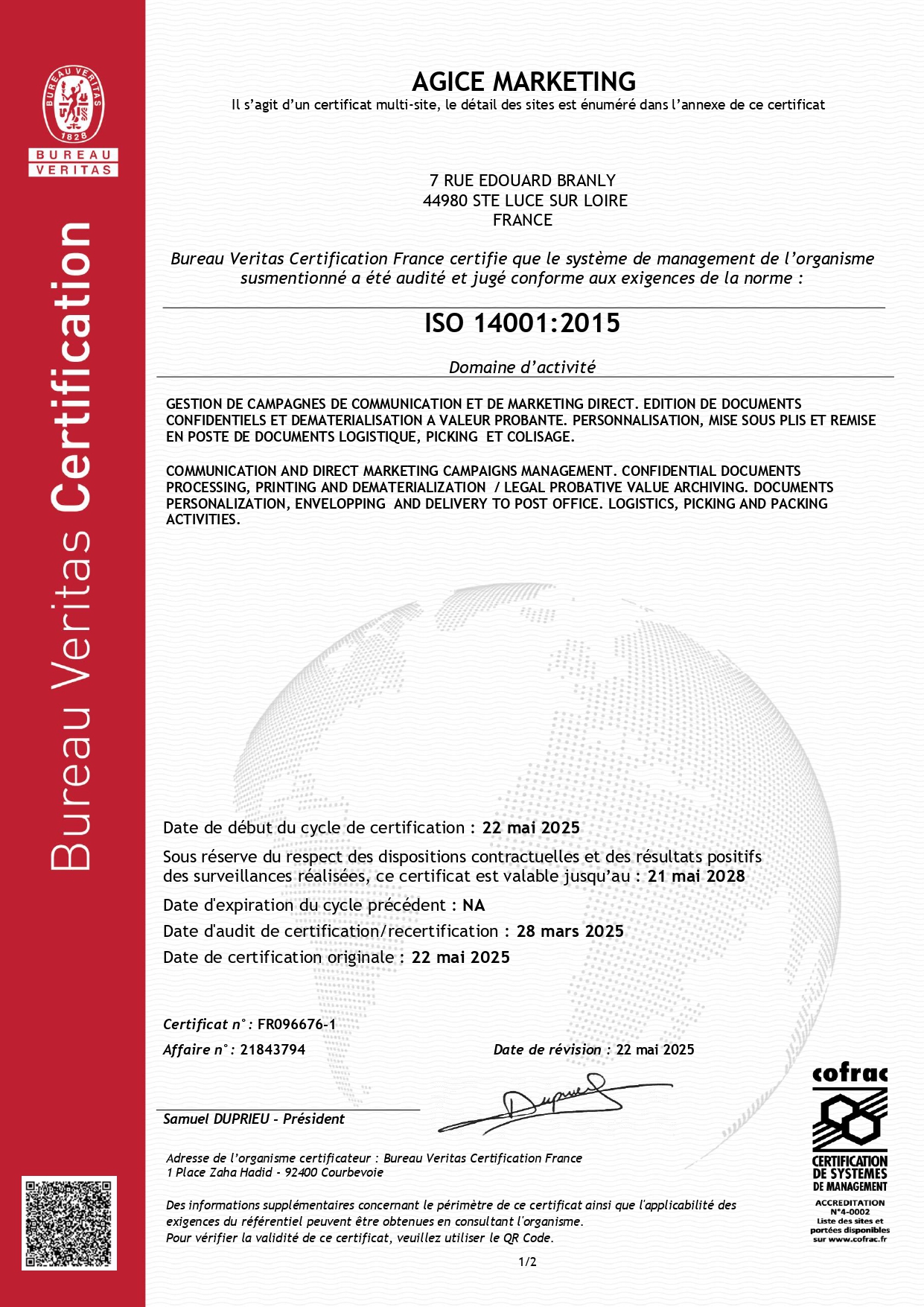 AGICE est certifié ISO 14001 depuis mars 2025.