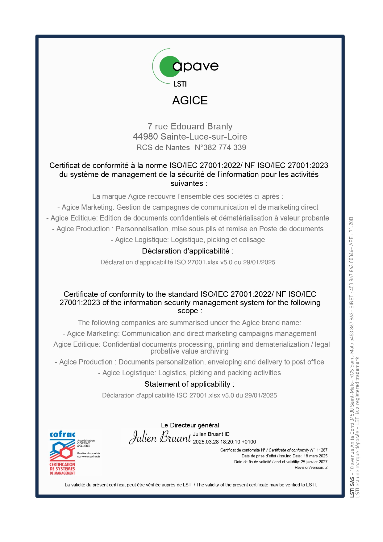 Pour maintenir un niveau de conformité répondant aux exigences de la Norme, une veille constante s’exerce, avec des surveillances des pratiques en vigueur (postes informatiques, suppression des données, mise à jour des outils internes..).